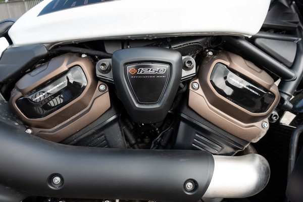 A két napos eseményen nem győzték elégszer hangsúlyozni a Revolution (forradalom) szót. A kollégám szobájában még a tükrön is szerepelt. Nem véletlen, hiszen egészen biztos, hogy a Revolution Max 1250T elnevezésű blokknak nagy utat szánnak. A Pan Americában mutatták be, ahhoz képest módosítottak rajta, hogy a karaktere jobban kiszolgálja a Sportster S felhasználási területét. A teljes blokk aluból van, a forgattyús ház, a Nicasil-os hengerek, ami pedig nem, ott igyekeztek magnéziumot használni. 60 fokos V2 hengerelrendezésű, folyadékhűtéses, négy vezérműtengellyel. Szívó- és kipufogó oldalon is változó szelepvezérléssel és hidraulikus szelephézag állítással. Gyakorlatilag ezek az alapok, amik a Pan America-ból érkeztek, és ahhoz képest kezdték el áthangolni.