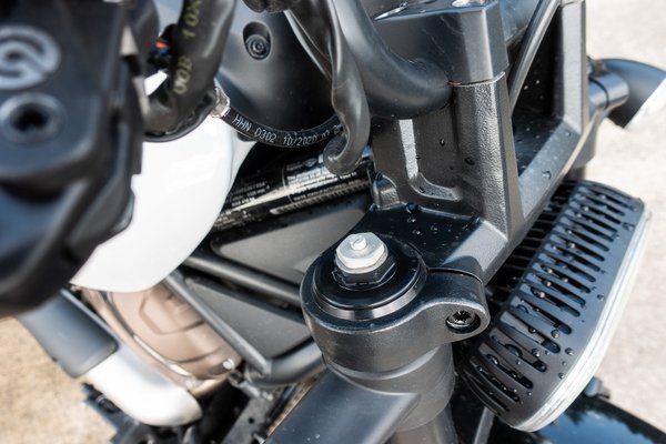 Dave Moss legyen a talpán majd, aki hozzányúl, elöl ugyanis 92 mm hátul pedig 50 mm rugóúttal kell gazdálkodnunk. Azért az sejthető, hogy ilyen számok mellett nem fogunk mindent lefedő setup-ot találni. A gyári beállítás az esős körülmények között pont ugyanazt az érzést nyújtotta, mint a blokk. Finom kifejezéssel jellemezve: buta. A visszajelzések abban merültek ki, hogy néha reccsent egyet a gerincem az úthibákon. A németországi úthibákon. Áldozatok a dizájn oltárán a funkció rovására. A fékek viszont nagyon rendben voltak, nem harap akkorát, mint egy dupla első tárcsás felszerelés, de a kommunikáció, amit kapsz tőlük, az tiszta és egyértelmű. Brembo elemekből építkezve, elöl 320 mm-s tárcsába 4 dugattyús nyereg kapaszkodik, hátul pedig egy dugattyú alakítja hővé a mozgási energiát egy 260 mm-s tárcsán. Az ABS már nem szimplán egy visszacsatolásból dolgozik, ugyanis a 6 tengelyes IMU ellátja tanácsokkal a dőlésszög függvényében.