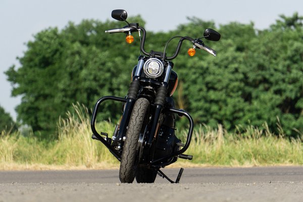 Amikor bejelentették, hogy nagyblokkos lesz a Street Bob, azzal indokolták, hogy ez egy kemény motor, amivel keményen is kell menni. Hogy a kemény menés mit is jelent, azt nem sikerült megfejtenem, mert ha sietősre veszed, akkor az egyetlen első féktárcsa miatt a féktávokra nem építkezhetsz, a kanyarsebességet a kb. 30 fokos maximális dőlésszög erősen limitálja, marad tehát a kigyorsítás, mint egyetlen fegyver, és ebben egészen jó is, ha telibe rávered a gázt, szépen eltekeri a hátsó gumit, a műszerfalon pedig elkezdenek pörögni a számok - hamar megvan a 160. Menne tovább is simán, de az apehanger kormány miatt esélytelen beledőlni a szélbe, autópálya-tempónál már kifeszülsz, mint egy vitorla. Ki lehet bírni, csak nem különösebben jó, a Street Bob inkább országúti motor.