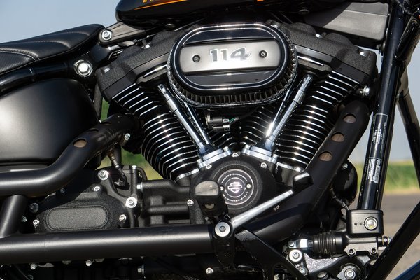 A Softail vázas első Street Bob még a 107-es (1746 köbcentis) Milwaukee-Eight blokkot kapta - ez a Harley újkori csodája, nyomórudas vezérléssel, de hengerenként négy szeleppel, a klasszikus modellekbe ezek kerülnek különböző méretekben, míg a túraendurójukba meg az új powercruiserükbe már egy vizes, felülfekvő vezérműtengelyes, változó szelepvezérléses 1250-es V2-est pakolnak. Tehát belekerült a 107-es blokk, de 2021-re nagyon ugyanolyan lett, mint a Softail Standard. A Standardnak kétszemélyes a nyerge, más az első kereke, és jobb helyen, előretolva van a lábtartó, valamint több rajta a króm - amúgy tényleg ugyanaz. Utólag sem tudok okosabb lenni náluk, a legjobbat lépték, belerakták a Milwaukee-Eight nagyobb, 114-es (1868 cm3) változatát.