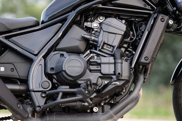 Az 1084 köbcentis, soros kéthengeres, vizes blokkal sok dolguk nem volt, és a költséghatékonyság jegyében megtartották a lánchajtást is, pedig mennyivel elegánsabb lenne ugyanez szíjjal. És ha már lefejlesztették hozzá a duplakuplungos automata váltót, ehhez is rendelhető 340 ezer forintért DCT. A kell-e a DCT kérdésre nincs bekészített válaszom, minden típusnál eseti döntést kell hoznom. Az NC sorozat például DCT-vel a jobb, a VFR1200-nál és az Africa Twinnél hibás döntésnek tartom, a Goldwingnél pedig nagyjából mindegy volt, mindig azt a változatot éreztem igaz útnak, amelyiken éppen ültem. Rebelből nem mentem manuálissal, de a DCT után nem maradt hiányérzetem, szóval egyelőre csak óvatosan, de azt mondom, megéri. Hogy azért, mert ehhez a műfajhoz passzol, vagy egyszerűen 11 év folyamatos fejlesztés és csiszolgatás után lett ilyen jó, a végeredmény szempontjából mindegy. Ráadásul állítható a váltó karaktere, milyen hamar kapcsoljon fel, illetve szükség esetén bármikor bele lehet nyúlni manuálisan, mondjuk egy előzés vagy kanyar előtt visszaváltani.