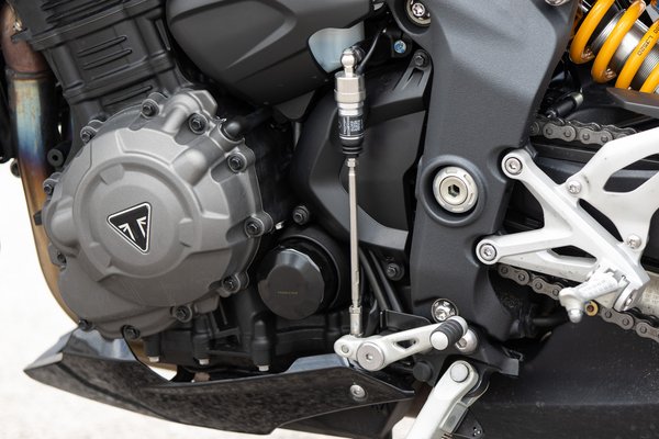 Mint azt jól tudjuk, mindig a szem eszik először. A dizájn leginkább ízlés kérdése, de a Triumph jelenleg az egyik – ha nem a legjobb – kidolgozási minőséget kínálja az iparban. A csavarfejektől kezdve a műanyag kapcsolókon át a rendszámtartó konzolig minden alkatrész arról árulkodik, hogy a motorjaikat mániákusok tervezik. Az új 1200-as blokk látványa is esztétikai élmény, nem találni egyetlen szabadon vezetett kábelt rajta. Még a forgalomba helyezéshez kötelező rusnya prizmát is sokkal esztétikusabban oldják meg a többi gyártónál: a féknyeregre csavarozott konzolok helyett egyszerűen fel van ragasztva a teleszkópszárra – tapasztalatból mondom, kézzel eltávolítható. De a további fődarabok is csodálatosak.