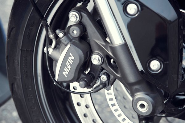 A futóművet illetően előre 41 milliméteres Showa fordított villa került, száranként kettéválasztott csillapítással, hátra monoshock, szintén a Showától. A rugóút egyformán 150 milliméter. A 17 colos kerekek a súlycsökkentés jegyében aluöntvényből készültek, Michelin Road 5-ös gumik feszülnek rajtuk. A fékrendszert a Nissin szállítja, elöl két 310-es tárcsába harapnak a kétdugattyús nyergek, hátra egy 255-öst szereltek, egydugattyússal.
