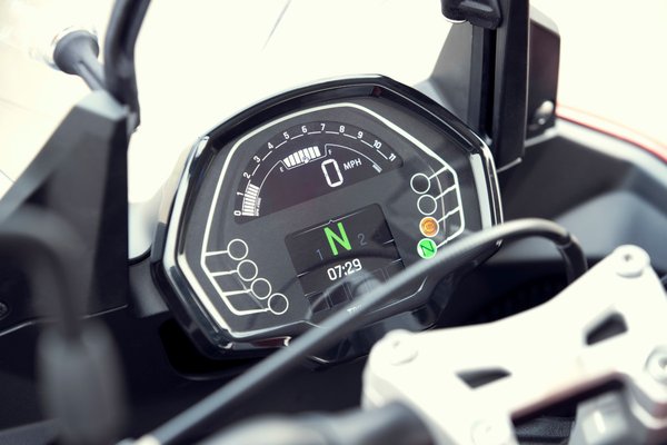 Ha elektronikai csomagról beszélünk, érdemes megemlíteni, hogy két menetprogramból választhatunk: Road (utcai) és Rain (esős). Ezek módosítják a gázreakciót, a kipörgésgátló hangolását (ez amúgy kikapcsolható). Az alapfelszereltség része az ABS is. Kis kézi erőt igényel a rásegítős csúszókuplung. A világítás minden eleme ledes, a TFT kijelző multifunkciós, fut rajta navigáció, a csatlakoztathatóságot pedig a My Triumph rendszer biztosítja.