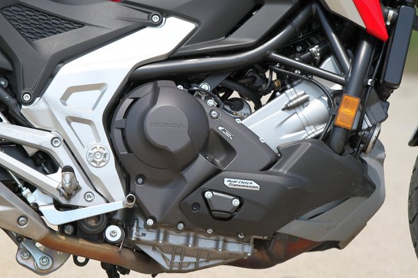 Az anyagtudomány fejlődik, és még mindig találnak kiskapukat, ennek hála a menetkész tömeg 6 kilóval csökkent. Így a manuális kuplungos, hatfokozatú, lábbal kapcsolható váltós 214 kilót nyom, a DCT verzió pedig 224 kg-t. Nem lett nagyon elspórolva, de ami belekerült, legalább minőségi érzetű. Az acélcső gerincvázban annyira alacsonyan van a blokk, hogy nagyon jól palástolja a fent említett számokat. Egy húszast simán letagadhatna. Meg is próbálták palástolni, hogy virgoncabb legyen, rövidebbre vették a tengelytávot (1535 mm) és a megváltozott futómű-geometria mellett is megtartották a 27 fokos villaszöget. Nem egy kanyarvadász vadállat, de a 800 mm magas ülésben ülve annyira kézre áll minden, hogy abszolút semleges testtartás mellett pakolhatod, ahova csak akarod.