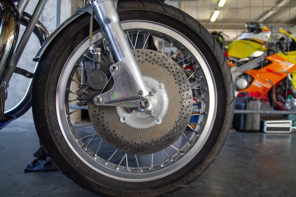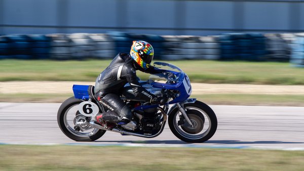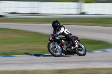 A Seeley vázba elöl egy Norvil teleszkóp került, bár belül modernebb, de nem állítható (az állíthatóságot több veteránversenyen is tiltják), erre a villára a dupla első tárcsafék miatt volt szükség - érdekesség, hogy a főfékhenger áttétele állítható. Hátra Hagon gátlók kerültek, csak a rugóelőfeszítés állítható. Gumiból nem volt nagy választás, ebben a méretben (110/80 R18, 130/80 R18) nincsenek tuti pályagumik, ezért a legtöbb klasszikus versenymotor ugyanezen a Continentalon fut. Vettem róla üléspróbát, és nagyon jó az üléspozíciója, a kormány és a lábtartók helyzete is kimondottan modern. A mai sportmotorokhoz szokott ember is egyből otthonosan érzi magát rajta.