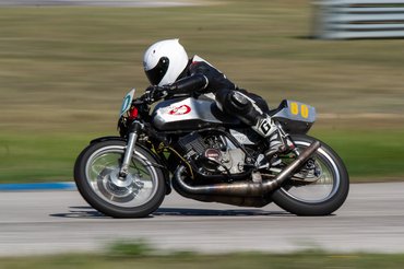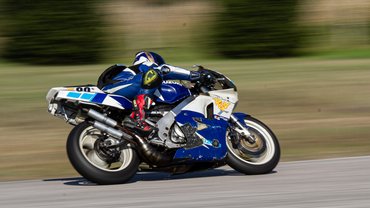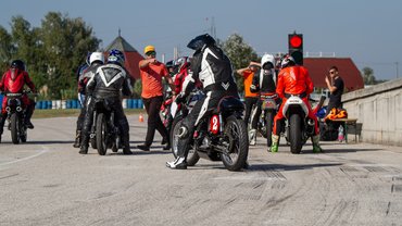 Az egyhengeres versenymotor elképesztő robajjal kelt életre, mintha minden más, a Morini Corsarók, az RD Yamahák, a Suzuki RGV, a Pannóniák hangtalan villanymotorok lennének. Még csak ráfordult a célegyenesre, de a pálya másik végén hallottam, hogy magasabb fokozatban van az ideálisnál - Tamás kímélte a váltót, két kör után már egy bovden is szabadon lobogott a motor alatt, de ő nem időre ment, hanem tiszteletköröket, levezetni egy stresszes nap végén.