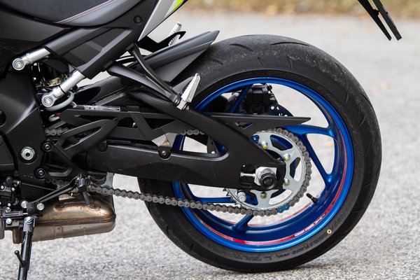A GSX-S1000 egyébként egy hatalmas mixe a reciklálásnak és a legózásnak, az idomokon és az első lámpán kívül alig van alkatrész, amit ne lőttek volna el máshol is - a blokkról volt már szó, de a fékek, a műszerfal, a lábtartók, minden ismerős, a lengővilla például a K7-es vagy a K9-es GSX-R-é lehetett, hiszen a lecsapott él jelzi, hogy ezt eredetileg egy dupla kipufogós modellen szolgált.