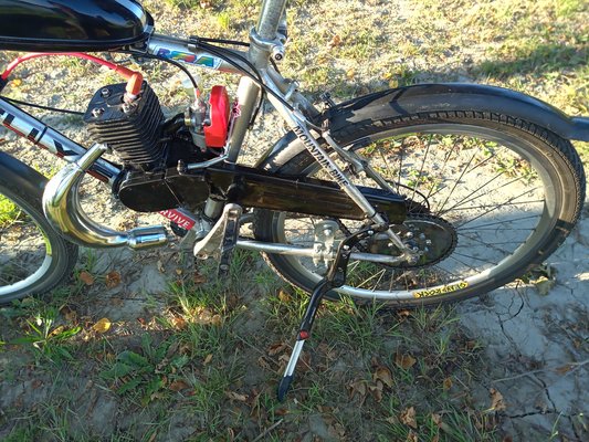 A készlet minden alkatrészt tartalmazott, onnan már csak egy kis bütykölésre volt szükség, de Gábor szerint tekinthető plug and play-nek is a rendszer, mely hivatalosan 50 köbcentis, és a teljesítménye nem éri el az 1 kW-ot. A legerősebb szett postával együtt 170 euró volt, és tényleg egy nagyon egyszerű szerkezet, száraz kuplunggal, keverékolajozással, váltó nélkül - az egész 12 kiló, egy teleszkópos bringával lényegében kész egy könnyű enduró.