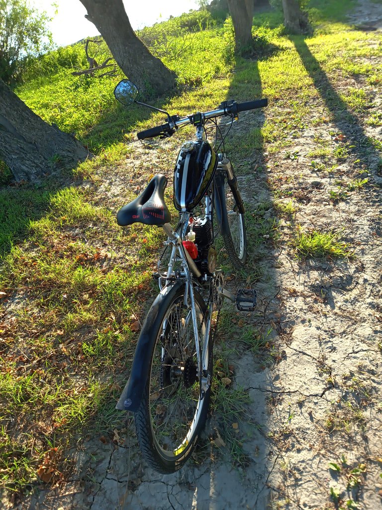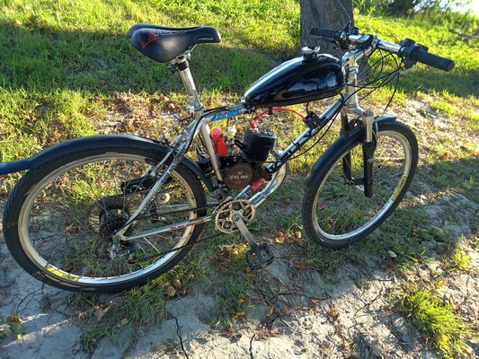 Először fűnyírómotorban gondolkodott, de az internet eléköpte a dedikált megoldást, 50-60-80 köbcentivel. Kétütemű, biciklire szerelhető segédmotor-kitekről van szó, amelyből biztonsági játékosként kapásból az erősebbet rendelte, elvégre egy 95 kilós emberhez a véleménye szerint az jobban illik.