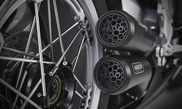 A 798 köbcentis háromhengeres természetesen érintetlen maradt, de kapott egy új Arrow kipufogórendszert, cserélték a motorvezérlőt. A mezei Supervelocéktől – már amennyire mezeinek lehet nevezni akár az alapmodellt is – vörös markolatok, valamint a tankon végigfutó bőrszíj is megkülönbözteti.