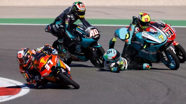 Itt még Foggia vezet, de Acosta beszúr a belső íven, és el is tud menni. Ekkor viszont érkezik hátulról Binder, aki pedig Sergio Garciával van meccsben. Kissé kamikaze módon vetődik be, túl nagy a tempó, így kifelé sodródik a belső ívről, kiüti a motort Foggia alól, Garcia pedig aztán az olasz versenygépén esik át. Binder szerencsés, hiszen tovább tud menni, noha később kizárták.