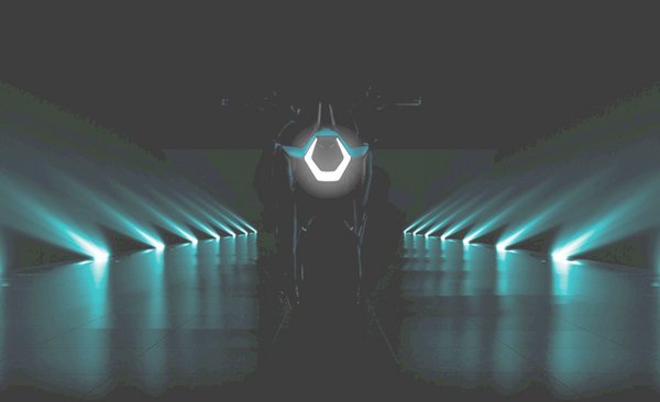 Ami biztos, az a hatszögletű fényszóró, ha pedig kicsit feljebb húzzuk a képen a fényerőt, akkor egy elég zömök, jó kiállású motorkerékpár körvonalazódik. Jó eséllyel naked bike-kal vagy valamilyen félidomos megoldással van dolgunk, aránylag magas és széles kormánnyal, kényelmes üléspozícióval.