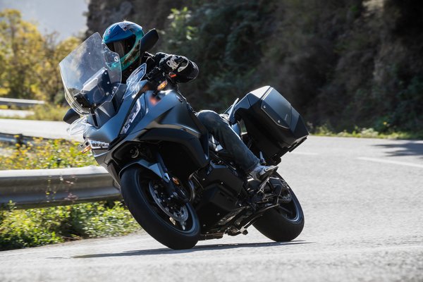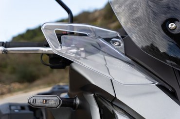 A szélvédelme remekül vizsgázott, a plexi legfelső állásban ügyesen eldobta a sisakom felett a szelet, nem keltett brutális zajt még húzós tempónál sem, de amivel sok gyártó nem foglalkozik, hogy eközben a karokat és a lábakat sem veri a szél - a kormány környékéről a kis légterelők, a lábakról a masszív első idom dobja el a menetszelet. Nincsenek kellemetlen turbulenciák, illetve a szélvédőn és a légterelőnél lévő nyomáskiegyenlítő nyílások miatt a plexi felé is csak minimális szívóhatást érezni. Tehát tudja azt, amiért a nagy, szénné szteroidozott túraendurókat igazán szeretni lehet, hogy egyenes háttal, teljes kényelemben utazol 170-nel. Amiről mindenki tudja, hogy illegális, aztán amikor másfél óra alatt megérkezel az Alpokba, hogy végre motorozz, valahogy feloldod magadban a szabályszegés okozta belső feszültséget.