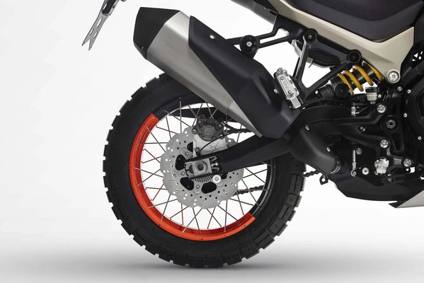A sorkettest egy térhálós acélcsőváz fogadja be, és a futómű is elég ígéretes: elöl teljesen állítható Marzocchi villa, hátul pedig változtatható csillapítást és előfeszítést biztosító rugóstag található. A fékeket a Brembo szállította, elöl két 320-as tárcsát találunk négydugattyús nyergekkel.