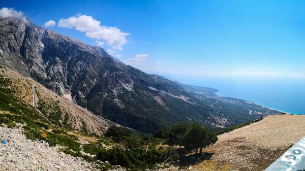 Az ünneplés valahogy mégis elmaradt. A Llogara-hágó Kékestetői magasságban lévő kilátójában csak tátottuk a szánkat, olyan kilátás tárult elénk. Egyik irányban lefelé a tengert, másikban felfelé óriás hegycsúcsokat, a kettő között pedig a partot látod végig, hófehér kavicsos strandokkal és apró településekkel, ameddig a táj el nem veszik a párás levegőben. Kétség kívül ez volt a Meteorák után a túra második csúcspontja.