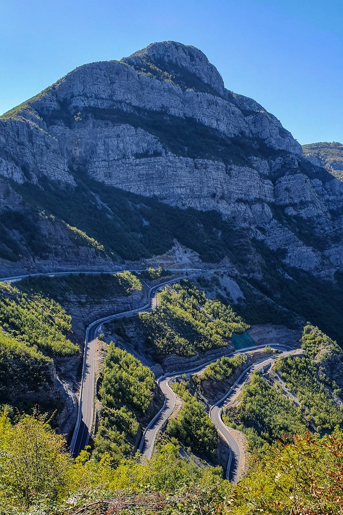 Egy hegyen átívelő végtelen és kietlen országúton igyekeztünk a félsziget nyugati része felé. A forgalom sűrűségét (ritkaságát) tökéletesen leírja, hogy egy komplett sávot elfoglaló fenyőfa még senkinek sem szúrt szemet, évek óta növöget az aszfalt felett. Sütött a nap és alig volt felhő az égen, de a magassággal arányosan a hőmérséklet rohamosan csökkenni kezdett. Kezdtük magunkat kellemetlenül érezni. Amikor már csak kettő fokot mutatott a hőmérő, megálltunk öltözködni. Felvettem minden meleg ruhámat, de az ujjaim átmeneti kesztyűben még így is lefagytak. Szerencsére egy óra múlva már túl voltunk a nehezén, a hegy túloldalán ismét kánikula fogadott. Délután, mikor Sarandában csobbantunk a 25 fokos Jón-tengerben, már csak egy vidám sztori volt, hogy aznap majdnem megfagytunk.