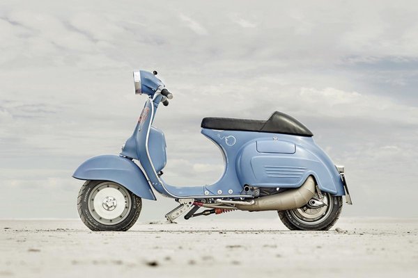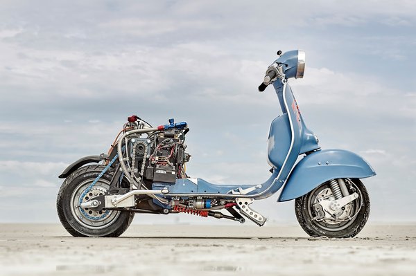 A német Marek Nachlik szeret robogókat átépíteni és tuningolni a hamburgi műhelyében, a leghíresebb munkája pedig a 10 inch terror névre keresztelt Husqvarna blokkos Vespa.