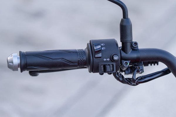 A műszercsoport szép kerek és digitális. Körben a fordulatszámot mutatja, középen pedig a sebességet. Gyárilag fokozatkijelzővel rendelkezik, ami kezdő motorosoknak kimondottan jól jöhet. Napi számláló és üzemanyagszint-jelző is van, szóval minden, ami feltétlenül kell. A fényerő általában megfelelő, de erős napsütésben volt, hogy nem volt könnyen olvasható. Illetve a műszer oldalán lévő funkciógombok kapcsolgatását nem javaslom menet közben, elég hülye helyen vannak.