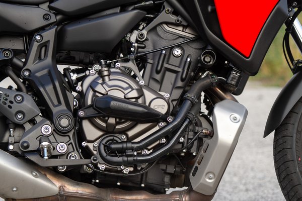 A korábbi 74,8 lóerőből 73,5 maradt, ugyanaz történt, amit az alapot adó MT-07-nél már cikkben és videóban is előadtam: jött egy nagy katalizátor, és elengedtek a csúcsról egy keveset, csak meglegyenek az előírások. A lényeg viszont nem változott, megmaradt a 68 Nm nyomaték és a remek karakter. Aki azért venne Tracer 7-et, hogy többnek láttassa magát, van egy rossz hírem: ez nem egy erős motor. A kezdők összefossák magukat rajta, és az összes sebességhatárt csúnyán meg lehet sérteni vele, de ez inkább kellemes, mint erős. A katalógusadatokért karakterben kárpótol, jó ütemben jön meg az erő, kiszámíthatóan és szórakoztatóan indul meg, lehet nyomatékból szörfözni vele. Ugyanaz a jóindulatú, a motorossal összekacsintó csibész, mint öt évvel ezelőtt.