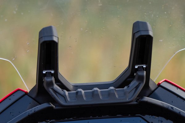 Az új idomokat keskenyebbre faragták, de a szélvédelme nem romlott, a plexi pedig menet közben is állítható egy kallantyúval - kíváncsi lennék, hogy az NT1100 vagy a V-Strom 650 projektvezetői mit éreznek, amikor megnézik a Tracer egyszerű, mégis tökéletesen működő megoldását. A kis szélvédő mögött nincs Gold Wing-es értelemben vett szélcsend, inkább a félidomos nakedekhez - pl. Fazer, Bandit S - hasonló az élmény, megvan a hűsítő menetszél, csak nagy tempónál valahogyan komfortosabb. Elviselhetőbbé teszi az utat, míg elérsz a Tátrába vagy az Alpokba, ott pedig már egy fürge motorral tudod végigfűzni a hágókat.