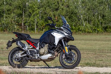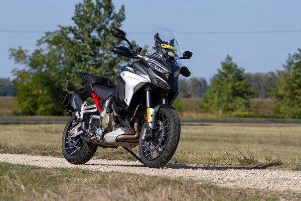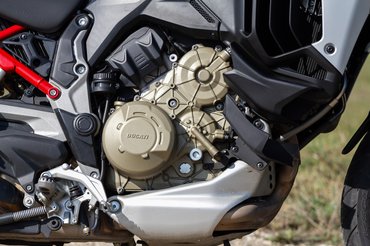 A Multistrada V4 egy teljesen új motor - nem a régibe csavarozták be a Desmosedici Stradalét, hanem üres papírról indulva, az alapoktól tervezték újra - és már az alapoknál eldőlt az irány, a GS-sel azonos, elöl 120/70-19-es, hátul 170/60-17-es gumimérettel láttak neki. Akik ragaszkodnak a 17-es felnikhez, azoknak kijött a Pikes Peak kiadás, nehogy bárki S 1000 XR-t vegyen bánatában, kétharmadannyiért. A V4-es Multi tehát csak az idomok miatt ismerős, valójában az alapjaitól új, a váz, a futómű, a lengővilla, minden. És ebbe a túraendurós körítésbe tették bele az eredetileg a Panigalébe tervezett V4-es módosított változatát.