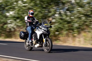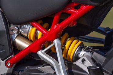 1103 köbcentiről 1158-ra hízott, de a 70 fokos főtengely elékelést meghagyták, így 0-90-290-380 fokoknál van gyújtás - és ez egészen más, mint amit bármilyen korábbi V4-nél hallhattunk, köze sincs a szintén 90 fokos hengerszögű VFR-ek vagy RVF-ek járásához. Egyszerre van meg benne a V2-esek lüktetése és a V4-esek fenyegető morgása, alapjárat közelében az előbbi, elforgatva pedig az utóbbi dominál. Simán szalad 11-es fordulatig, ami soknak hangzik, de a Streetfighterben és a Panigaléban 14 500-nál ér a csúcsra. A Multi nyomatéka lentebbről érkezik, de a fordulatszám tetejét lecsapták, emiatt nincs meg az égig zengő dráma, amit például a Streetfighter minden kihúzatásnál előad.