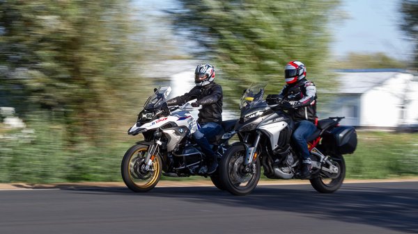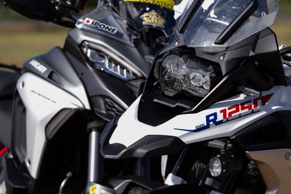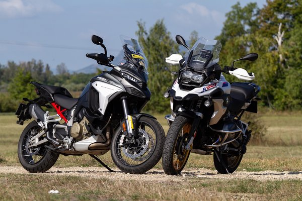 A Multi V4-nek megvan a hangulata, állat a körítés, de szokni kell, mint amikor veszel egy új bukósisakot. A BMW azonnal otthonos, mintha együtt nőttünk volna fel. Nem csak az összhang van meg, hanem az érzés is, hogy már körbejártuk a világot ezerszer. És mindehhez elég egy perc, és onnantól minden természetes, kivéve talán azt az egyet, ahogy az 1254 köbcentis, rommá szteroidozott, változó szelepvezérlésű bokszermotor megindul. A legkisebb késlekedés nélkül azonnal, elképesztő vehemenciával elkezd tolni, sokkal lentebbről ébred, mint a Multi V4-ese. Végsebességben, gyorsulásban, pályán köridőben persze, hogy a Ducati a jobb, a kettő között 35 lóerő a különbség, annyira már önmagában A2-es jogsi kéne, tehát a Ducati kitömi a BMW-t, de amikor az van, hogy poroszkálásból hirtelen fel kell gyűrni az aszfaltot, akkor a GS a potensebb.