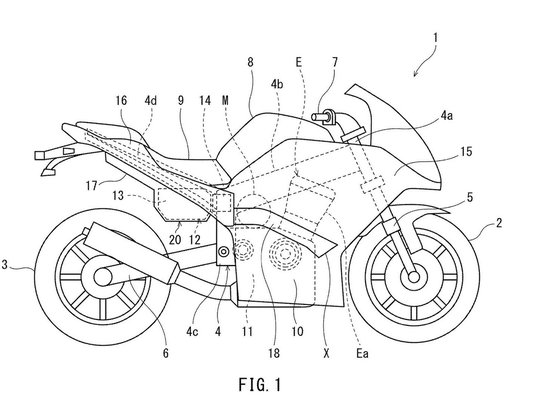 A másik szabadalom a villanymotor elhelyezésével foglalkozik, a Kawasaki a hatfokozatú váltó fölé építi be - ennek köszönhetően a belsőégésű használati élmény megmarad, illetve előrevetítik azt, hogy bármilyen, hasonló motor-váltó elrendezésű motorkerékpárnál bevethető lesz ez a megoldás.