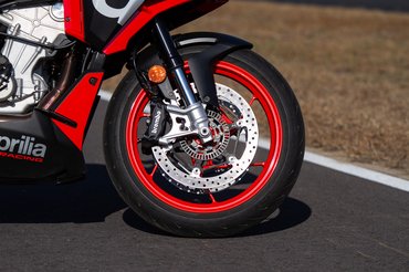 De körzete nem az autópálya, és a tempója sem halálos. Főleg, hogy a butább elektronikai csomag is mindent tartalmaz, ami megvédi az átlagjúzert saját magától. Az ABS és a kipörgésgátló magától értetődő, és egészen jól is működnek. Külön piros pont, hogy Time Attack módban hátul kikapcsolja a blokkolásgátlót, így lehetővé teszi a kiváló Pirelli Diablo Rosso Corsa II abroncs gyorsított kopását. Ekkora teljesítménnyel csak készakarva lehetne hanyatt esni, ennek ellenére kikapcsolható egykerék-kontroll is van a menüben. Ha megvesszük az IMU-t, az ABS már dőlésszög-érzékennyé válik, és gyaníthatóan a kipörgésgátló is szofisztikáltabban fog működni. A tesztmotoron gyorsváltó sem volt, az RS-en viszont igen. A váltó átlagos kapcsolási érzetén sokat dob, hogy mindkét irányba könnyedén lehet kuplung nélkül dobálni a fokozatokat.