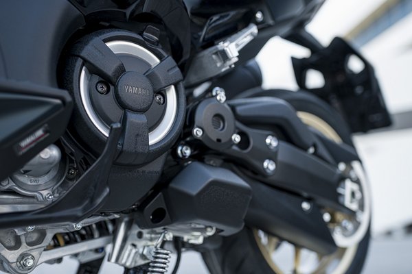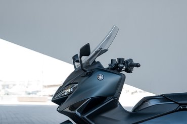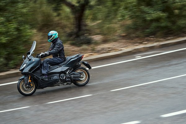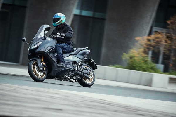 A Yamaha volt az első, akinek volt mersze szakítani a Vespa és a Lambretta által lefektetett robogóépítési elvvel, a TMAX blokkját nem a lengővillára építették, hanem a vázba - így csökkent a rugózatlan tömeg, merev lett a kaszni, egyből jó helyre került a tömegközéppont, és így már lehetett alá rendes futóművet és féket építeni. Azóta eltelt több mint 20 év, és elértünk a TMAX nyolcadik generációjához, amelynél az alaprecept továbbra is ugyanez.