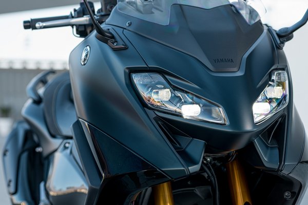 A blokkhoz érdemben nem nyúltak, maradt az 560-as soros kéthengeres (pontosan: 562 köbcentis), 47 lóerővel és 55,7 Nm-rel. Teljesítményből egészen biztosan többet is ki tudtak volna hozni, de így fér bele az A2-es kategóriába, amibe például a legerősebb ellenfelet, a Forza 750-es csak fojtással lehet belekényszeríteni. Megértem, hogy nem törték össze magukat még öt lóerőért: lényegében egyetlen érdemi konkurens van jelenleg a piacon, a Honda Forza 750, hasonló áron is mérik őket, a döntés így inkább érzelmi alapon zajlik: duplakuplungos Hondát szeretnél, vagy CVT-s Yamahát?