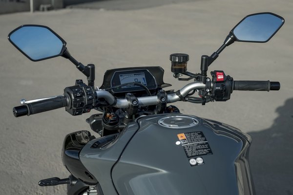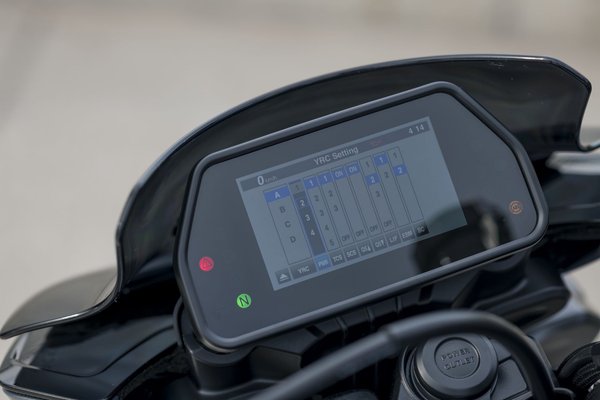 Ezen a szinten már nem lehet elspórolni a futóművet, a Yamaha minden paraméterében állítható KYB villát és központi rugóstagot ad, az SP változathoz pedig járnak a legújabb generációs elektronikus Öhlinsek. Gumiból is olyat választottak, ami le tudja tenni az útra ezt az erőt, a Bridgestone S22-vel még soha nem volt rossz tapasztalatom, és az MT-10-en is rendkívül meggyőző volt, még vízen is sikerült borostásra járni a futófelületet. Nincsenek illúzióim ezzel kapcsolatban, ebben jó eséllyel benne volt vastagon az elektronika is, amelyhez már egy hattengelyű IMU szolgáltatja az adatokat, figyelve a motor elemelkedését és oldalgyorsulását is, illetve a 4,2 collos, vagyis viszonylag kicsi, színes TFT kijelzőn személyre lehet szabni bármit, a teljesítményleadástól kezdve a motorfékig, és az összes felügyeleti szerv egyenként kikapcsolható. A négy üzemmód közül a Mode A egy MT-09 értelemben vett idegbeteg állat, elképesztő vehemenciával és nagyon érzékeny gázkarral, míg a Mode D egy esőmód. Egy nap alatt esélytelen kitapasztalni, hogy mi az igaz út, amúgy is ízlés és megszokás kérdése, hogy melyik jön be. De ez nem csak az elektronika beállításaira igaz, hanem az egész hyper naked kategóriára is.