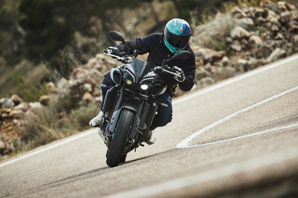 A vezetési élményt a motor tömörsége határozza meg, még az MT-09-nél is rövidebb két és fél centivel, mindössze 1405 mm a tengelytáv. Zömök, kőkemény, és ha robban, mindent elsöpör, mint a fiatal Mike Tyson. Ezzel a tengelytávval és a laposnak nem mondható villaszöggel is zavarbaejtően stabil, nem olyan izgága és virgonc, mint az MT-09, határozott mozdulattal kell rátenni az ívre, viszont aztán ott is marad. A stabilitása ugyanakkor kizárólag horizontálisan igaz, vertikálisan még bekapcsolt elektronikai hókuszpókuszokkal is rosszalkodik, hajlamos elkönnyíteni a kormányt. Amikor váltott kanyarban gázra elegykerekezik, a sokat tapasztalt pályamotorosok számára az a baráti összekacsintás a géppel, úgy mondják, hogy szórakoztatóra írták meg a szoftvert. Én viszont ilyenkor nem összekacsintok a motorral, hanem aggódni kezdek.