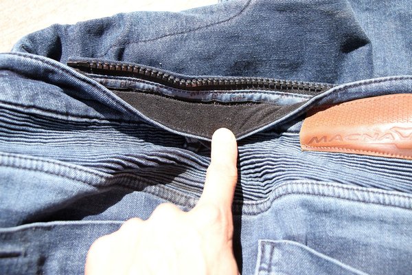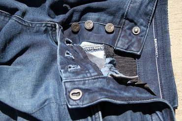 Hátul a deréknál egy tépőzárral rögzített cipzár van, amellyel a dzsekivel lehet összehúzni a nadrágot - ennek esésnél lenne jelentősége, úgy a kabát nem tud felcsúszni, de mivel a farokcsontig leérő gerincvédőt hordok, ami a legtöbb dzsekimen túllóg, ezért számomra ennek sincs jelentősége.
