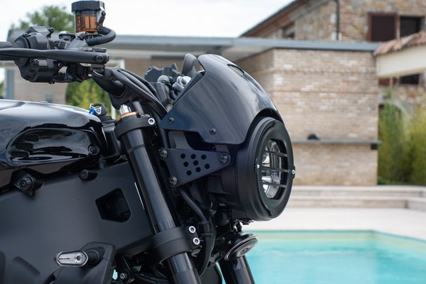 A Yamahanál Sports Heritage-ként aposztrofált kategória legújabb tagjánál is vannak kisebb formai anomáliák. A foteldizájnerek szerint az öntött alu hídváz eleve idegenül hat egy régi időket idéző motoron, azonban már a Deltabox konstrukció is elmúlt negyvenéves. Mellesleg az elődhöz képest ötven százalékkal nagyobb merevség mellett is két kilóval kevesebbet nyom a mérlegen. Viszont a klasszikus kerek led fényszóró továbbra is fura pozícióban helyezkedik el a TFT-műszerfal alatt. Azt azonban sikerült kihúzni a prezentációt előadó termékmenedzserből, hogy ez leginkább a törvényi előírásoknak köszönhető. Szóval, ha nem akarják a típust például Európában százharmincezer euróért új modellként homologizálni, kénytelenek az alap MT-09 műszaki paramétereinél maradni. Szerencsére az utángyártó ipar már az előző modellhez is kínált a gyárihoz hasonlóan ízléses alukonzolt, ami beljebb helyezi a fényszórót, és javít a fura arányokon.