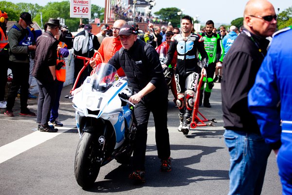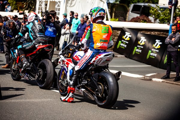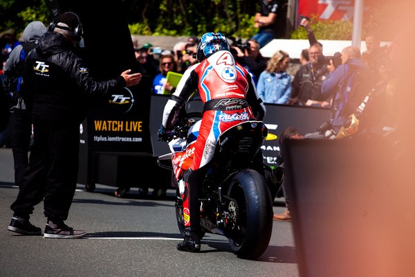 Minden úgy történt, ahogy eddig. John McGuinness búcsúzóul megölelte feleségét, Beckyt és a távolba meredt, Harrison szintén búcsúzott, Peter Hickman pedig jó reklámhordozó módjára még a rajt előtt is a csapatfotókon mosolygott, miközben nyomasztó mennyiségű ember állt körülötte, leginkább szponzorok, mivel az újságírókat idén már nem engedték a rajt előtt a versenyzők közvetlen közelébe. Legalábbis az első tízhez nem.