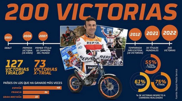 Minden motoros szakágnak megvannak a maga zsenijei, ha úgy tetszik, élő legendái. Ezeket a teljesítményeket persze nem lehet, és nem is érdemes összehasonlítani, annyira más terepmotorral nekimenni az Erzberg Rodeónak, vagy a gyorsasági-vébén húzni a gázt. Mégis beszédes az, ha valaki a saját szakterületén annyi versenyt tud megnyerni, mint a MotoGP-ben Valentino Rossi és Marc Márquez összesen. A triálvébén Toni Bou pontosan ezt tette.