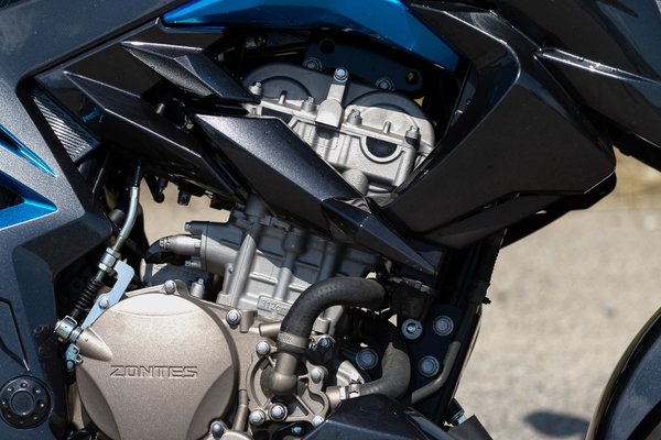Tesztre tehát nincs ideálisabb választás egy kiforratlannak hitt kínai motornál, de ennek a reciproka is igaz: abszolút értéken mérve motorozni találsz jobbat is nála. Aztán messziről ránézel a Zontesre, majd közelebb lépsz, szemügyre veszed a részleteket is, végül szemérmesen rásandítasz az árcédulára és az alapáras szolgáltatások listájára, és rögtön elkezded keresni a betűket a Scrabble-ben, hogy kirakd a játék megnyerésével kecsegtető 'ígéretes' szót. Csúszókuplung, kulcs nélküli indítás, napsütésben is jól olvasható LCD-kijelző, állítható kuplung- és fékkar, gumihőmérséklet- és guminyomás-kijelzés, féloldalas lengővilla, fordított első teleszkópok – ezeket a tételeket a nagy múltú gyártók sem szórják ész nélkül - pláne nem ebben a kategóriában.