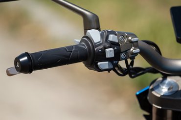 A csúszókuplung határozottan nem haszontalan holmi, már egy 125-ös farát is meg lehet úsztatni egy lendületesebb visszaváltással, a kulcs nélküli indítás viszont maga az áldás. Nadrágzsebből/hátizsákból már érzékeli a motor a tokent, és gombnyomásra lehet is indulni. A rendszer magabiztosan működik, sőt, a motor lezáró gombját megnyomva a kormányzár is automatikusan kattan.