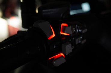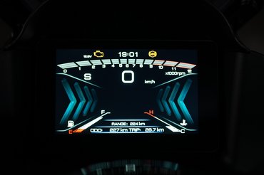 A Zontes ráadásul hoz valami újat, amit más cégek nem annyira erőltetnek: valódi extrái vannak. A közepes méretű szélvédő villanymotoros mozgatású, hogy ne kelljen csavarozgatni, ha állítanál rajta – de még megállni sem kell hozzá, bár tény, hogy a borzalmas útjainkon felső állásban zörög. A markolatokon a gombok kontúrjai este pirosan világítanak, az ülés alatti rekesz bélelt(!), a kulcs nélküli indítás alap, műszeregység helyett pedig egy LCD-kijelző van, amin négyféle nézet közül lehet választani. Az üzemanyag-betöltőt, az ülést és a két kesztyű(cske)-tartót gombnyomással lehet nyitni, az egyik üregben van USB-csati is. Még a legdrágább nagyrobogókon sem evidens, hogy a fékkarok állíthatóak, a Zontesen nem sajnálták el a kisebb kezű vásárlóktól. A kormány burkolatán lévő Zontes feliratú fedél alá pedig becsúsztatható egy opcionális mobiltartó. Igaz, a kínai ember tudja: mindez mit sem érne, ha a külvilág nem tud róla, úgyhogy a kulcs nélküli indítás veszett sípolással jelez minden műveletet. Ez van, új idők, friss gondolkodás!