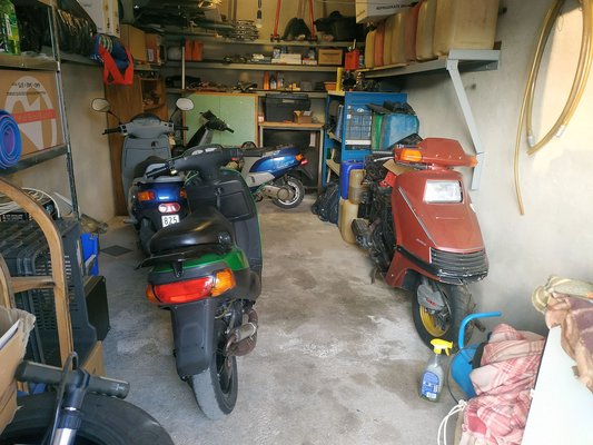 A vége az lett, hogy teljesen beépítettük a csapatba, így Gerivel vitték a robogókat a blokkcserére, majd jelezték, hogy félúton a Fehéren elszakadt a szíj, majd később, hogy a főtengely is kuka. Szóval az eredeti mesterterv végül nem adta ki, kell itt még blokkot fűzni, a csalós setupom viszont belekerült a fehérbe, és nagyon jól áll neki.