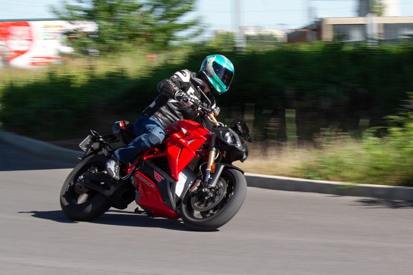 Addig matekoztak a lengővilla hosszával, a tengelytávval, a villaszöggel, az utánfutással, míg az irányíthatósága olyan lett, mint amit elvárok egy sportos motortól. Könnyű bevinni a kanyarba, de lefektetve sem izgága, hanem stabilan tart, a gázreakció élénk és kiszámítható, egyszóval lehet vele bökőset menni. Apró trükk, hogy az első lánckerék nem direkt a motor kihajtásán van, hanem van előtte egy lassító és egy fordító áttétel - a lassító áttételre azért volt szükség, hogy lehessen hozzá hagyományos méretű, motorgyári beszállítótól lánckereket vásárolni, a fordítóra pedig azért, hogy a villanymotor forgási iránya megegyezzen a haladási iránnyal, így annak giroszkóp-hatása hozzáad a stabilitáshoz.