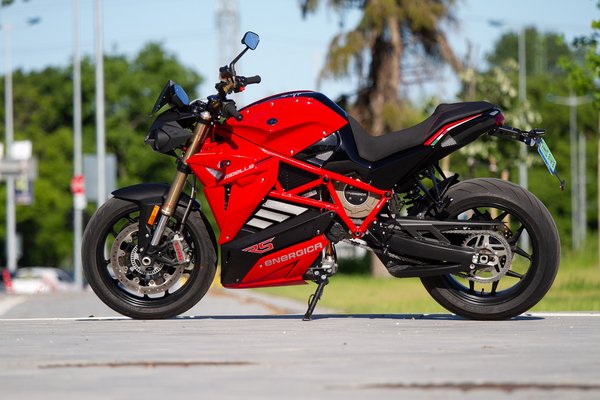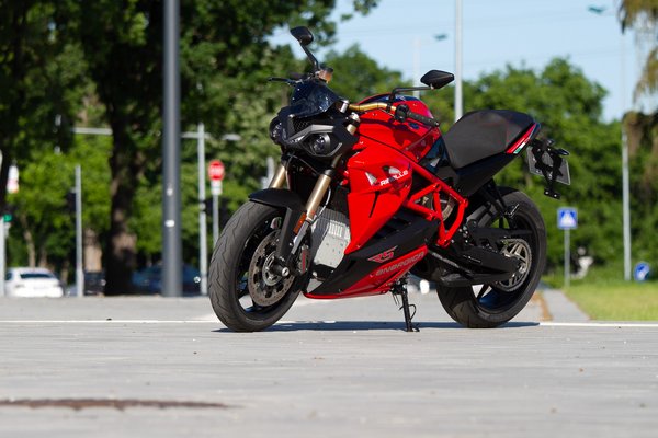 Azóta viszont sok elektrolit lefolyt már, és vannak egészen ígéretes villanymotorok, például az Energica Ribelle RS, amely a már megénekelt Eva EsseEsse9-nek közeli rokona, viszont műszakilag fejlettebb. A Ribelle egy sportos utcai naked, ennek megfelelően erősebb és könnyebb, bár egyik sem mellbevágó különbség: az állandó mágneses szinkronmotor és az inverter súlyán 10 kilót sikerült fogni, miközben egyszerre lett erősebb (144 LE helyett 169 LE, illetve 215 Nm) és takarékosabb. 2,5 másodperc alatt van százon, és érezhetően nem a nyomaték vagy a teljesítmény a gátja egy még jobb adatnak, hanem a gumik tapadása.