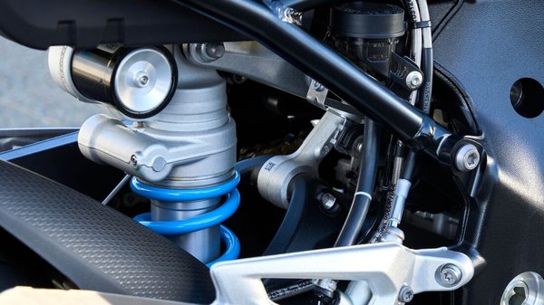 Az aerodinamikát sem vették félvállról, a kis szárnyak 220-nál 11 kilogrammnyi leszorítóerőt termelnek. Elsősorban tehát nagyobb tempónál tesznek hozzá a menetstabilitáshoz. A friss modell félaktív futóművet kapott, 45 milliméteres első villával, elektronikus állíthatósággal, és természetesen M-es féket is, épp olyat, amilyet az RR-en láthattunk. Elöl 320 milliméteresek a tárcsák, négydugattyús nyergekkel, hátul 220-as tárcsához szorítja a betéteket az egydugattyús nyereg. Betétből is van kétféle, az egyiket utcára, a másikat versenypályára szánják.