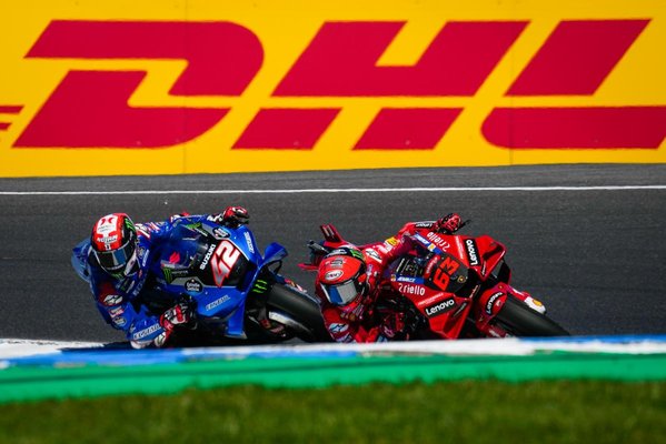Az olasz azzal viszont nem számolt, hogy Márquezen kívül lesz még egy versenyző, aki borsot törhet az orra alá, ez pedig nem volt más, mint a suzukis Alex Rins. A vezető hármas csodálatos csatát vívott az első helyért, és a motorversenyzés legmagasabb iskoláját mutatták be. Megannyi előzés, test-test elleni küzdelem után sokáig úgy tűnt, a Ducati verhetetlen, végül a teljesen más stílusban motorozó Rins egy óvatlan pillanatban beslisszant Bagnaia mellé, és húzta magával Márquezt. A nyolcszoros világbajnok szintén mindent megtett, hogy honfitársát legyőzze, a Honda hátsó gumijai füstöltek, Márquez pedig úgy motorozott mint akkor, és úgy, ahogy mindenki ismét látni akarta, de az ósulis Rins ellen még ez is kevés volt. Alex Rins így történelmi győzelmet hozott össze annak a gyárnak, amely az év végén kiszáll a sorozatból, és joggal őrjöngött a csapatmenedzserek pápája, Livio Suppo is. A láncdohányos olasz hangja estére minden bizonnyal elment, ennél szebb búcsúajándékot elképzelni sem lehetett volna.