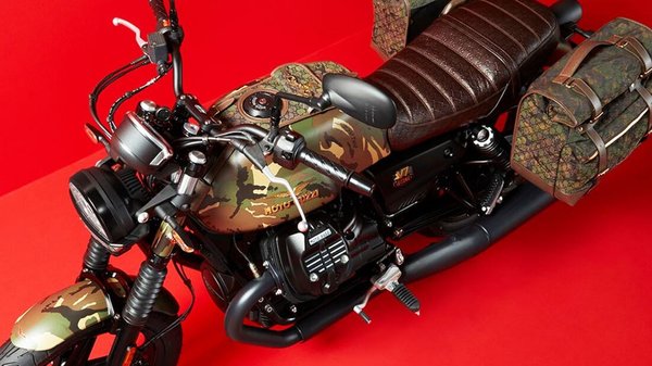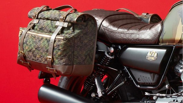A különkiadás barna bőrnyerget kapott, a felhasznált anyag pedig színében és minőségében is olyan, mint amilyet a Guccinál is előszeretettel használnak. A terepes kamuflázs fényezésre aranyszínű logók kerültek, nemcsak a Moto Guzzié, hanem a Palace és a Gucci együttműködésére utalók is, de kapott Gucci-logót az első villa is. Készült hozzá egyedi oldaltáska is, meg persze a ruhakollekció sem maradhatott el.