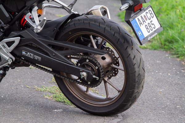 Mert váltani kell, méghozzá sokat. 5000 alatt is el lehet használgatni, de akkor hangból és menésből sem kapunk túl sokat, fölötte megjön az élet, nagyjából a 7750-en érkező 27,5 Nm-es nyomatékcsúcs és a 9000-nél tetőző 31 lóerős teljesítmény között lehet használni, ha haladósra vesszük a figurát. A motor hangja nem vérpezsdítő, mitől is lenne az, egy árva henger pörög vízhűtéssel, egy PGM-FI elektronikus befecskendező juttatja be az üzemanyagot, a kipufogó is diszkrét, inkább annak örüljünk, hogy fent pont megvan annyi erő, hogy tisztességesen kimotorozni évekbe teljen, alul használva pedig 3 liter alatti fogyasztást lehessen belőle kihozni. Ahogy én húztam, úgy persze 5 litert kért minden száz kilométeren, de az utolsó cseppig megérte.