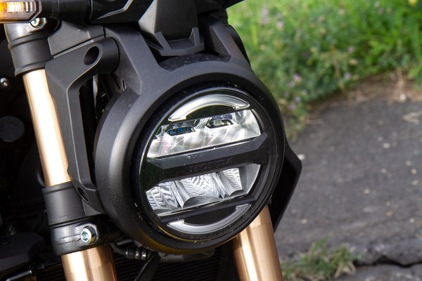 A hátsó kerék blokkolását nem csak ABS akadályozza meg, a túl heves visszakapcsolásokat megelőzendő csúszókuplungot tettek a CB300R-be, ami a kezdőknek nagy ajándék lesz, főleg, ha már túlzottan azt érzed, hogy belejöttél a visszakapcsolásba. A CB300R úgy adja meg a motor uralásának élményét, hogy elhiszed, király vagy, és még nem is kell gyorsan menned. Autós párhuzamot az MX-5-ös Mazdával tudok hozni, abban is az a szép, hogy ugyanazt a sportautós vezetési élményt adja, mint a nagyok, csak nem kell hozzá mindig ön- és közveszélyes tempót diktálni.