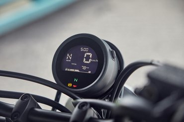 Az acélcsövekből összeállított bölcsőváz, a kerek lámpa, a védőharmonikával ellátott hagyományos – egyébként 41 milliméteres – teleszkópvilla, a kétoldali hátsó rugóstagok, valamint a hurkás ülés is a retrós benyomást erősíti. Közben persze a modern holmik sem maradtak le, teljesen ledes a világítás, a kerek házba foglalt LCD-kijelző pedig a sebesség mellett az aktuális fokozatot, a fogyasztást, az időt egyaránt mutatja, és a kapcsolásra is figyelmeztet.